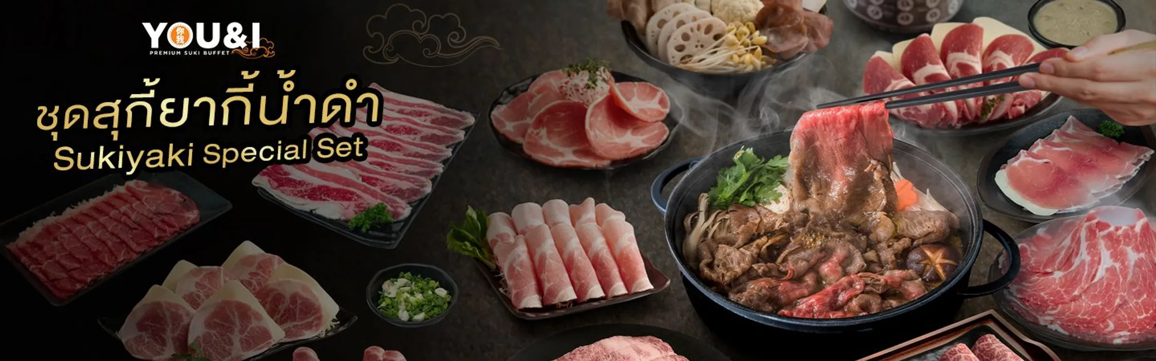 ราคาเต็ม 379 บาท ใหม่ !!! You and I ขอเสนอการทานอาหารแบบพร้อมทานไม่ต้องง้อไฟ โดยที่ส่วนประกอบทุกอย่างเป็นของสดเหมือนทานที่ร้าน คุณสามารถเลือกเป็น Kurobuta, WagyuBeef, กุ้งแม่นํ้ากับทะเล ที่ทำให้หม้อของคุณ อร่อย เข้มข้น