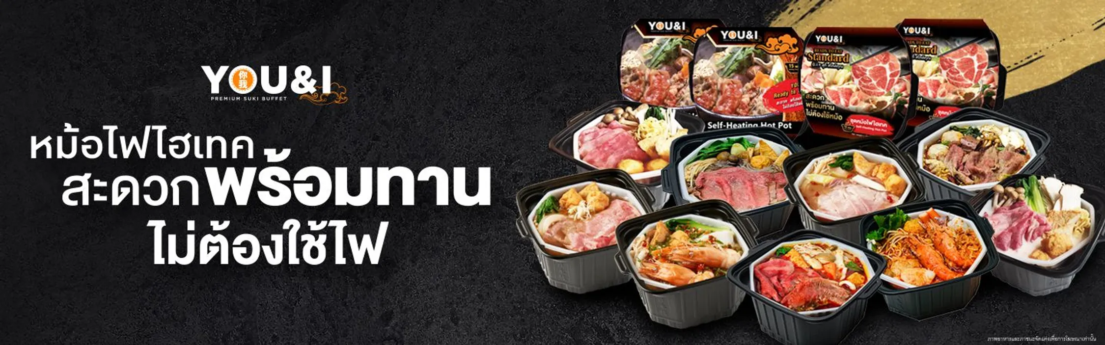 ราคาเต็ม 249 บาท ใหม่ !!! You and I ให้คุณรังสรรค์เมนู หม้อไฟแบบพร้อมทานไม่ต้องง้อไฟ โดยที่ส่วนประกอบทุกอย่างเป็นของสดเหมือนทานที่ร้าน คุณสามารถเลือกเป็นสันคอหมู, สันนอกหมุ, เบคอนหมู, เนื้อเสือร้องไห้ และซีฟู๊ด ที่ทำให้หม้อของคุณ อร่อย เข้มข้น